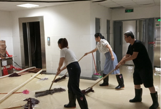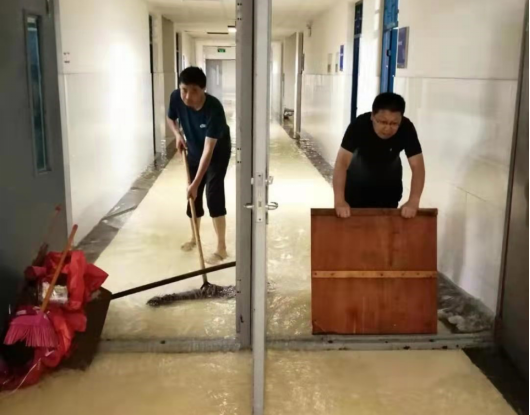 我院与数信学院联合开展教学楼抗洪抢险工作