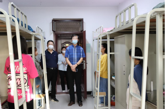 关爱进宿舍,温情暖人心。近日,校工会主席牛瑞庆深入善工苑新生宿舍走访慰问我院2022级新生,了解新生学习生活情况,调研疫情防控工作,并转达学校的问候与关怀。材料学院负责人陪同走访。