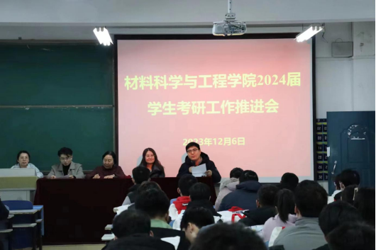 为营造良好的考研氛围,扎实推进考研工作,我院于12月6日晚在A14-606召开2024届学生考研推进会。学院领导、校心理健康教育中心人员、各教研室主任、专业导师、辅导员、班主任,全体2024届考研学生和在校生代表参加会议,会议由郭玉霞主持。