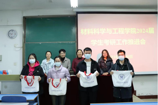 会议伊始,李国云介绍了学院2023届毕业生考研及就业情况,引导学生了解当前考研形势,树立正确的考研观念,坚定信心。高分子材料与工程教研室主任王利军对同学们给予厚望,希望大家在考试复习时沉下心来,张弛有度,争取一战成名。校心理健康教育中心常瀚老师结合自身经历,分享了考研经验和放松身心的方法。学生代表王德政分享了考研复习的方法,并鼓励同学们在冲刺阶段持之以恒,奋力拼搏,考出自己的风采。随后,宋海香院长作动员讲话,对同学们提出了三点要求:一是要有适度的紧张感,锻炼自己的抗压能力;二是坚持,不能轻言放弃;三是全力以赴,不负自己,不负青春年华。最后,各导师为同学们解答疑惑,提出了自己的看法与建议,大家积极提问,老师耐心指导,整个过程其乐融融。会后,学院为考研学生发放了考研礼包。
