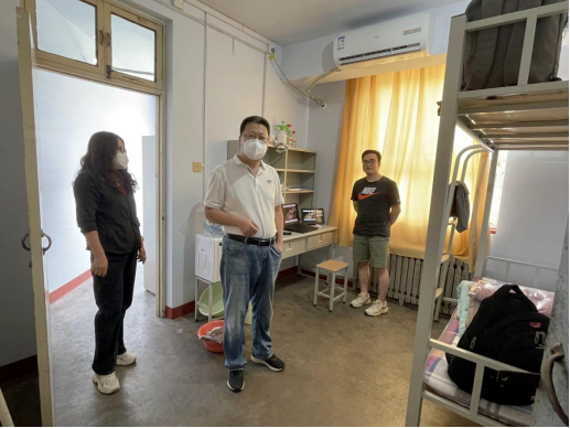 学院领导在辅导员的带领下分别走访了不同年级的学生宿舍,重点关注学生学业和生活两个方面。一是对学生宿舍环境卫生给予指导意见,希望学生在疫情期间保持宿舍干净整洁,勤洗手、常通风,配合学校做好防疫工作。二是了解学生疫情期间学习状况,鼓励学生调整好心态,积极参加线上学习,特别强调要增强安全意识,防范网络电信诈骗。走访宿舍过程中,吕有军、李国云看望了正在驻楼值班的老师,询问工作中的难点,希望学工队伍不断提高思想政治教育水平,深入学生群体,贴近学生,真正做好学生的良师益友。