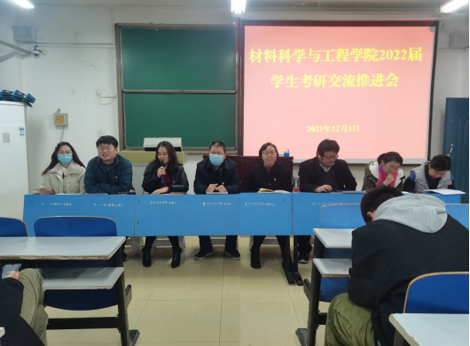 为进一步推2022届毕业生考研工作,帮助学生解决考前疑惑 121日下午,材料科学与工程学院于A14-606教室召开2022届毕业生考研交流推进会。学院领导吕有军、宋海香、李国云、李建新出席会议。教研室主任王艳飞、高倩倩,教师代表邱明艳、王利军、朱尊伟、李苗苗、刘洪亮,辅导员孟蓝翔及2022届考研学生共同参加了会议。会议由团总支副书记熊思彬主持。