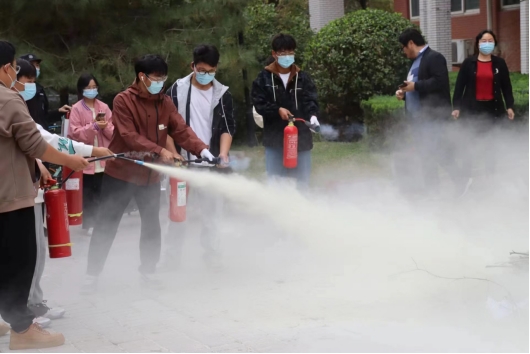 实验中心主任崔朝军为师生讲解灭火器使用方法