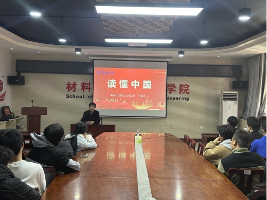 12月6日下午,校工会主席牛瑞庆以《读懂中国,坚定文化自信,促进安工高质量发展》为题,到材料学院为联系班级22级高分子材料与工程专业同学讲授思政课,并召开师生座谈会。