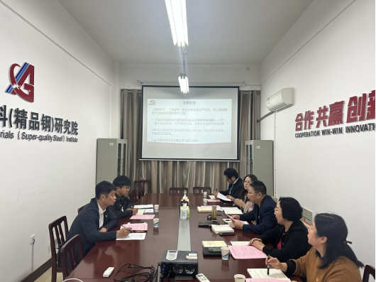 10月31日上午,材料学院党总支理论学习中心组召开学习研讨会,学院理论学习中心组全体成员参加,校理论学习第一巡听旁听指导组组长赵驰欣到会指导。