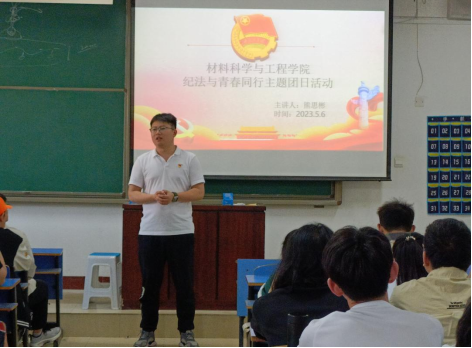 5月6日下午,我院团总支在A14-606开展了“纪法与青春同行”主题团日活动,21、22级各班学生干部参加,团总支副书记熊思彬出席活动。