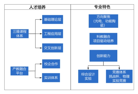 工程应用层:设置如《光电材料与器件》《纳米材料与技术》《功能陶瓷导论》等特色课程,培养学生在新型材料和光电领域的应用能力。